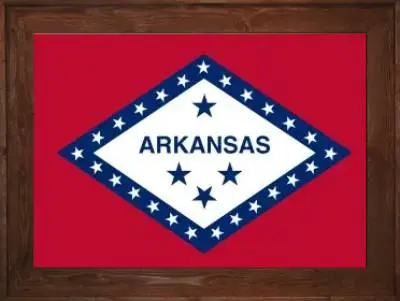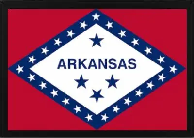 The flag of Arkansas is made in the USA and ships directly to you! Our 2×3 foot frame and canvas is the perfect formal wall decoration that will impress any guest. Also works as a fantastic gift for any Arkansan you know! This flag was designed by Willie Hocker of Wabbaseka in 1913 and was officially adopted by the Arkansas State Legislature in February 1913. You can find out more about the state of Arkansas flag history on this website. Not satisfied with just one? You can check out our more of our framed flags here.
