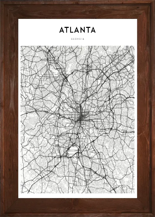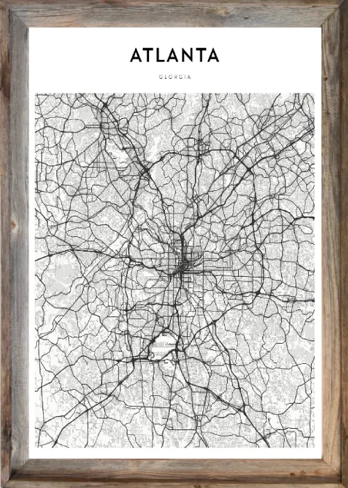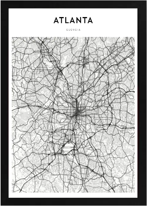 Incredible Framed Atlanta Map! This map is a black and white grid system style sketch of the city of Atlanta. Hang this stylish wall decoration in your home or office to show where you are from in a classy way.