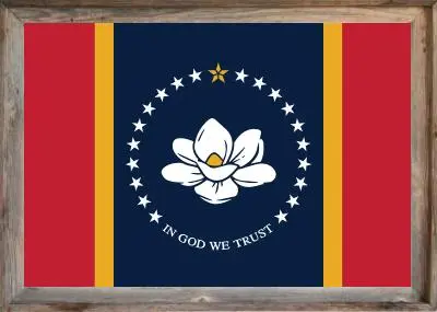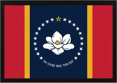 Our nylon state flag of Mississippi is made in the USA and ships directly to you! Our 2×3 foot frame and canvas is the perfect formal wall decoration that will impress any guest. Also works as a fantastic gift for any person from Mississippi you know! This flag was first designed in 1861 and reintroduced in 2020 as the new Mississippi state flag after backlash from the old flag. You can find out more about the history of the current Mississippi state flag on this website. Not satisfied with just one? You can check out our more of our framed flags here.