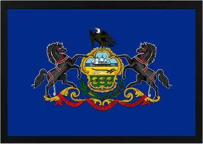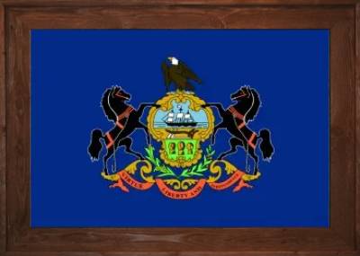 Our nylon state flag of Pennsylvania is made in the USA and ships directly to you! Our 2×3 foot frame and canvas is the perfect formal wall decoration that will impress any guest. Also works as a fantastic gift for any person from Pennsylvania you know! This flag was adopted by the state of Pennsylvania in June 1907.  You can find out more about the history of the state Pennsylvania flag on this website. Not satisfied with just one? You can check out our more of our framed flags here.