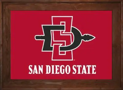 Our nylon SDSU flag is made in the USA and ships directly to you! Our 2×3 foot frame and canvas is the perfect formal wall decoration that will impress any guest. The San Diego State Aztecs logo was first introduced in 1961 and featured the head of an Aztec. The modern version was created in 2013 and forms a bow and arrow. You can find out more about the history of the SDSU flag and logo on this website. Not satisfied with just one? You can check out our more of our framed flags here.