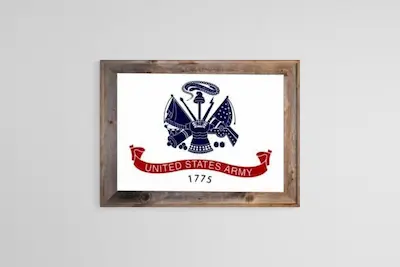 Our nylon Army service flag is made in the USA and ships directly to you! Our 2×3 foot frame and canvas is the perfect formal wall decoration that will impress any guest. The final version of the Army flag was designated to the public in June 1956. You can find out more about the history of the United States Army on this website. Not satisfied with just one? You can check out our more of our framed flags here.