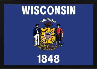 Our nylon state flag of Wisconsin is made in the USA and ships directly to you! Our 2×3 foot frame and canvas is the perfect formal wall decoration that will impress any guest. Also works as a fantastic gift for any person from Wisconsin you know! This flag was adopted by the state of Wisconsin in 1863 and was readopted in April 1913. You can find out more about the history of the state Wisconsin flag on this website. Glass is not included in any framed items, but there is room for glass to be inserted.
